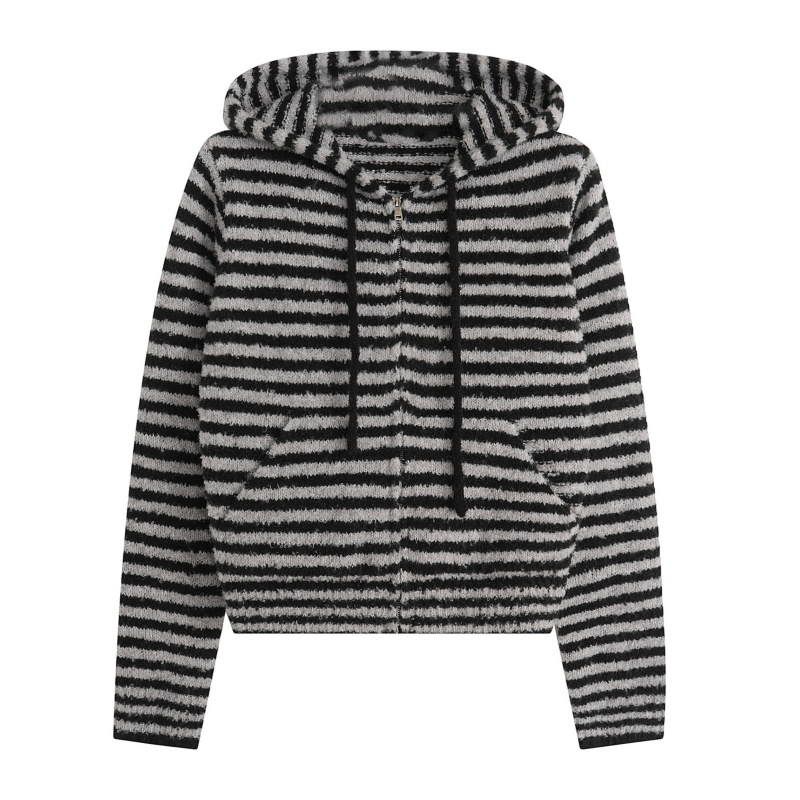 Black Striped Fashionable Zip-Up Hoodie